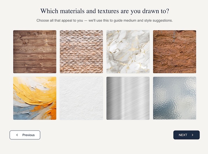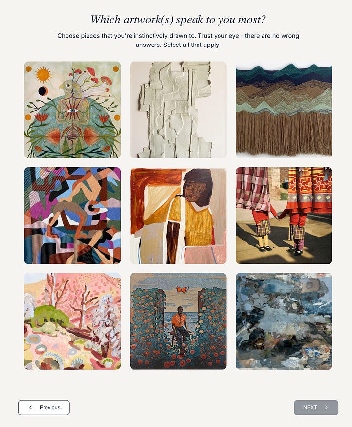 And in return? A personalized art style profile, giving you the language to start to lift the fog and discover art that makes your heart flutter.